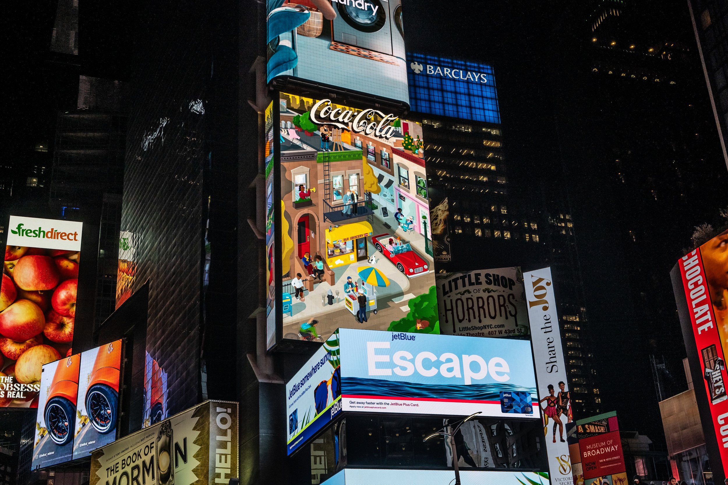 Various campaigns I’ve worked on featured in Times Square, NYC. Each concept was carefully crafted and collaborated with Coca-Cola’s in house creative team. Our goal was to standout in a sea of loud and distracting advertisements by using forced perspective, experiential design tricks, and an overall feeling of happiness, brought to you by Coke.